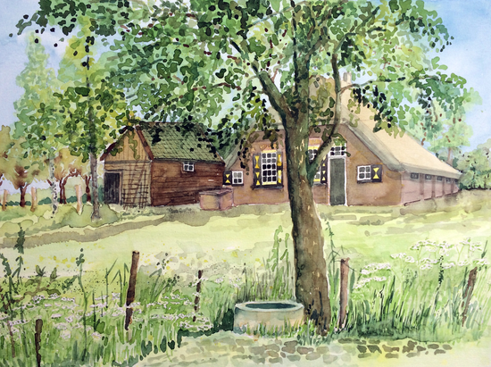 aquarellen, etsen, lino, acryl, pentekeningen, houtskoolschetsen