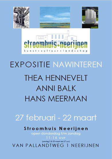EXPOSITIE NAWINTEREN THEA HENNEVELT ANNI BALK HANS MEERMAN Tekeningen, Schilderijen, Beelden
