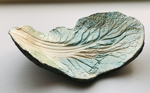 De galeriehoudster aan het woord: "Bladboomschalen. Werken met een ziel. Iemand die zich bezighoudt met keramiek is Josje Hamel. Sporen en afdrukken om te omarmen zoals ze ook haar eigen leven en dat van velen omarmt. De afdrukken hebben een prachtige glans."