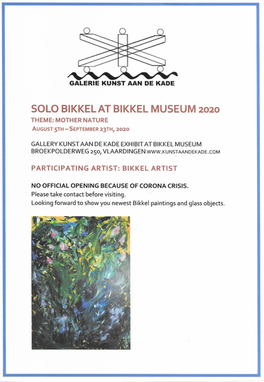 Gedurende de corona crisis 2020 heeft Bikkel veel geschilderd en ontworpen. Veel werk is uitgevlogen: donaties aan particulieren / collecties museum Zuid Korea, of verkocht. Of is gemaakt voor diverse projecten en is daar nu/straks te zien. Bijvoorbeeld Project Pakje Kunst uit Schiedam en/of in een zeer interessant Internationaal corona art project van Laurien Versteegh.