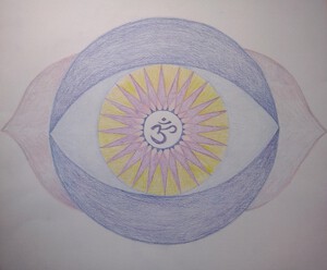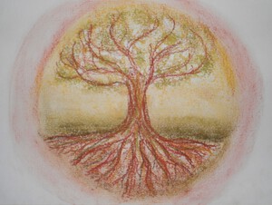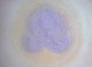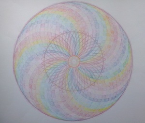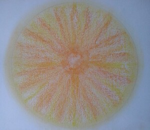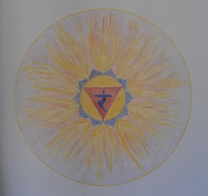 de chakra's (energetische krachtpunten) intuïtief weergegeven in pastel en kleurpotlood in mandalavorm