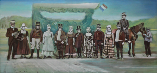 Familieportretten, waaronder portretten van mijn zus en haar 2 dochters, een tante, grootouders overgrootouders, zwager met 2 zijn broers, schoonouders van mijn zus, een nog onbekende oudtante, boerengezelschap met grootvader, folkloristisch gezelschap met koets en paard en een zelfportret met voorouders