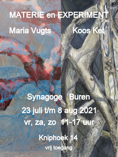 MATERIE EN EXPERIMENT, een expositie met werken van Koos Ket en Maria Vugts. Beide kunstenaars hebben geëxperimenteerd: Koos Ket met materie en Maria Vugts met monotype en tekeningen met acrylinkt.