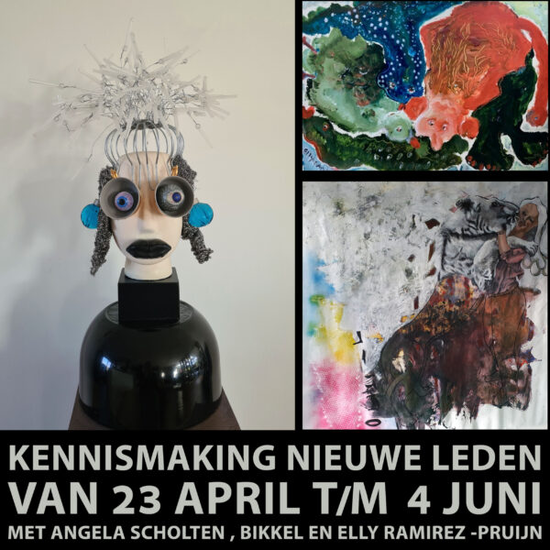 RAR presenteert drie nieuwe leden. Bikkel, Elly en Angela werken volop met kleur. Elly schildert, Bikkel schildert en maakt glasobjecten, Angy assembleert uit diverse gevonden voorwerpen beelden die je aan het denken zetten, maar die ook een grijns doen toveren. Fantasie en emotie zijn ook elementen die de dames binden, waar vanuit ze kunnen werken.