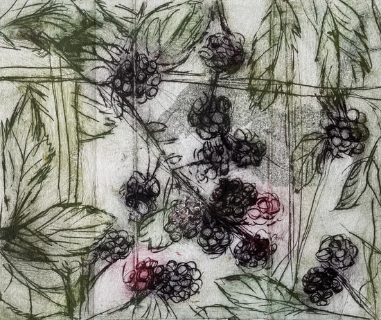 Van Friese Bodem, een groepstentoonstelling. Het Friese land wordt uitgelicht in verschillende verrassende technieken. Mijn bijdrage zijn de etsen met thema "zwarte bessen, van Friese bodem".