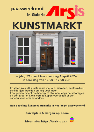 Kunstmarkt met 19 kunstenaars , hun werk. Diverse disciplines: beeld, schilderijen, grafiek, tassen, ijzerdraad