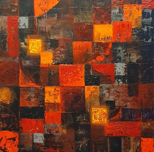 Laura Korver: Schilderijen Bibliotheek Rotterdam Ommoord Divers werk van de kunstenaar, vooral abstracte werken. Enkele werken uit de serie 'Halo-frame'.