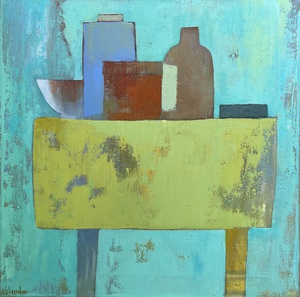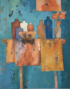 Met een zestal schilderijen doe ik mee aan een groepsexpositie met als titel Kakelbont in een winkel annex galerie Kakelbont.