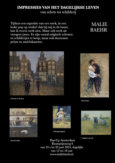 In de laatste week van juni exposeer ik in een leuke pop-up winkel vlak bij mij in de buurt. Er is recent werk te zien en werk uit vroegere jaren. Er zijn vooral schetsen en schilderijen te koop, maar ook duurzame prints en ansichtkaarten.