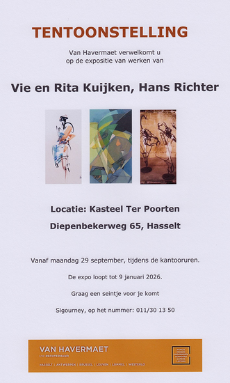 Expositie samen met zus Vie en Hans Richter. Schilderijen acryl op canvas. Kunstjuwelen KuRi