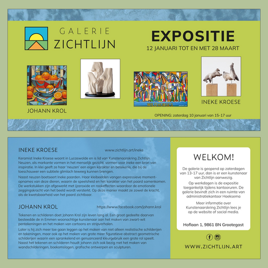 Sculpturen van keramist Ineke Kroese en kleurrijke abstract geometrische scilderijen van Johann Krol