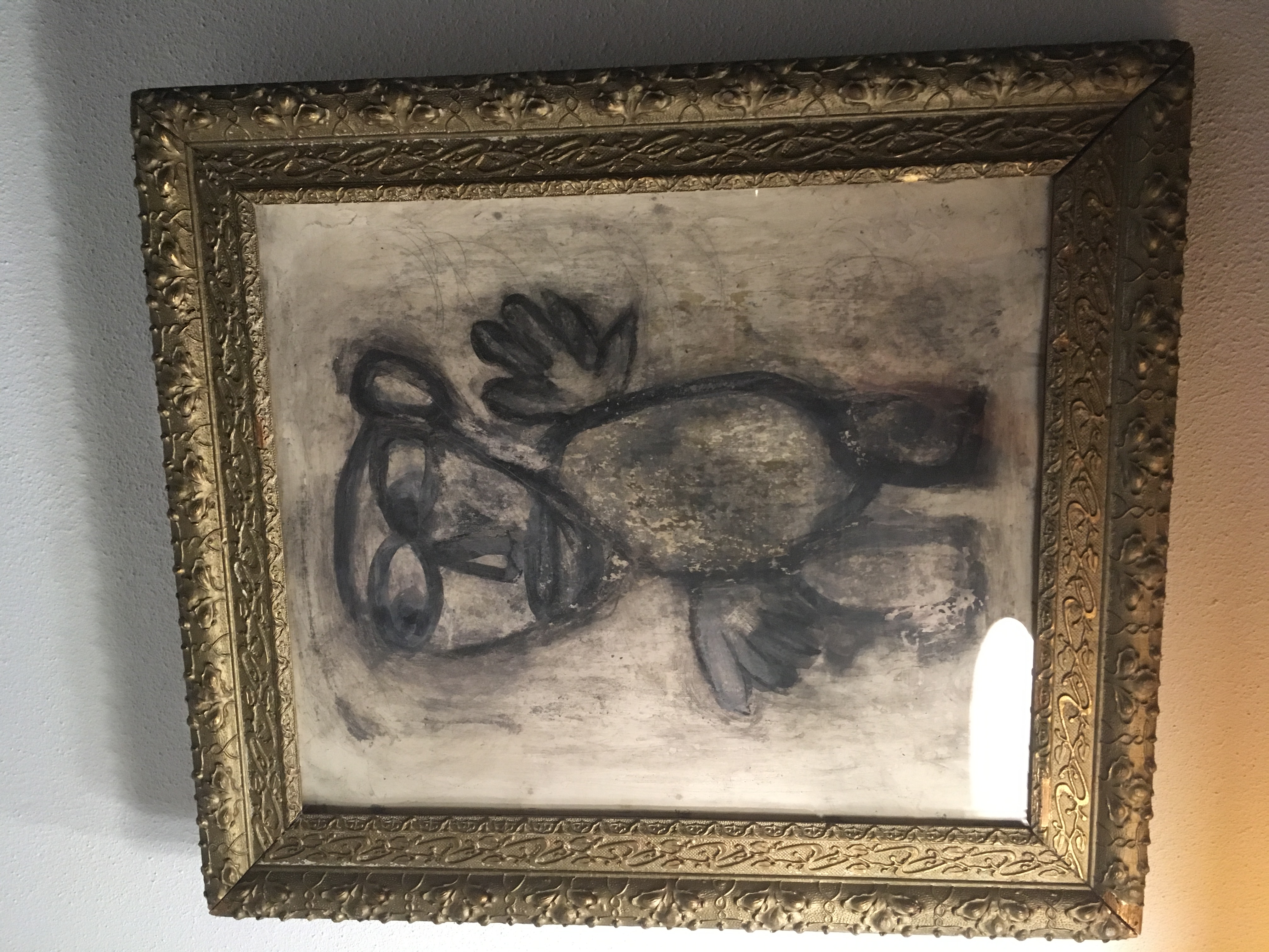 Ik hoop dat één van jullie me iets meer kan vertellen over het bijgevoegde schilderij. Het is een gouache van ongeveer 35x40 centimeter met een behoorlijke ouderdom, ik schat wel zo'n 60-70 jaar. Maar ik weet helaas niets over de herkomst of de kunstenaar, dus gaat er bij jullie misschien een belletje rinkelen? Het nummer op de achterkant zou wellicht kunnen helpen, maar ik weet ook niet goed hoe. Het karton waar dat nummer op is geschreven is overigens niet de achterkant van de gouache, want die zit op dat karton geplakt. Stel mij gerust vragen voor extra informatie, als dat helpt!
