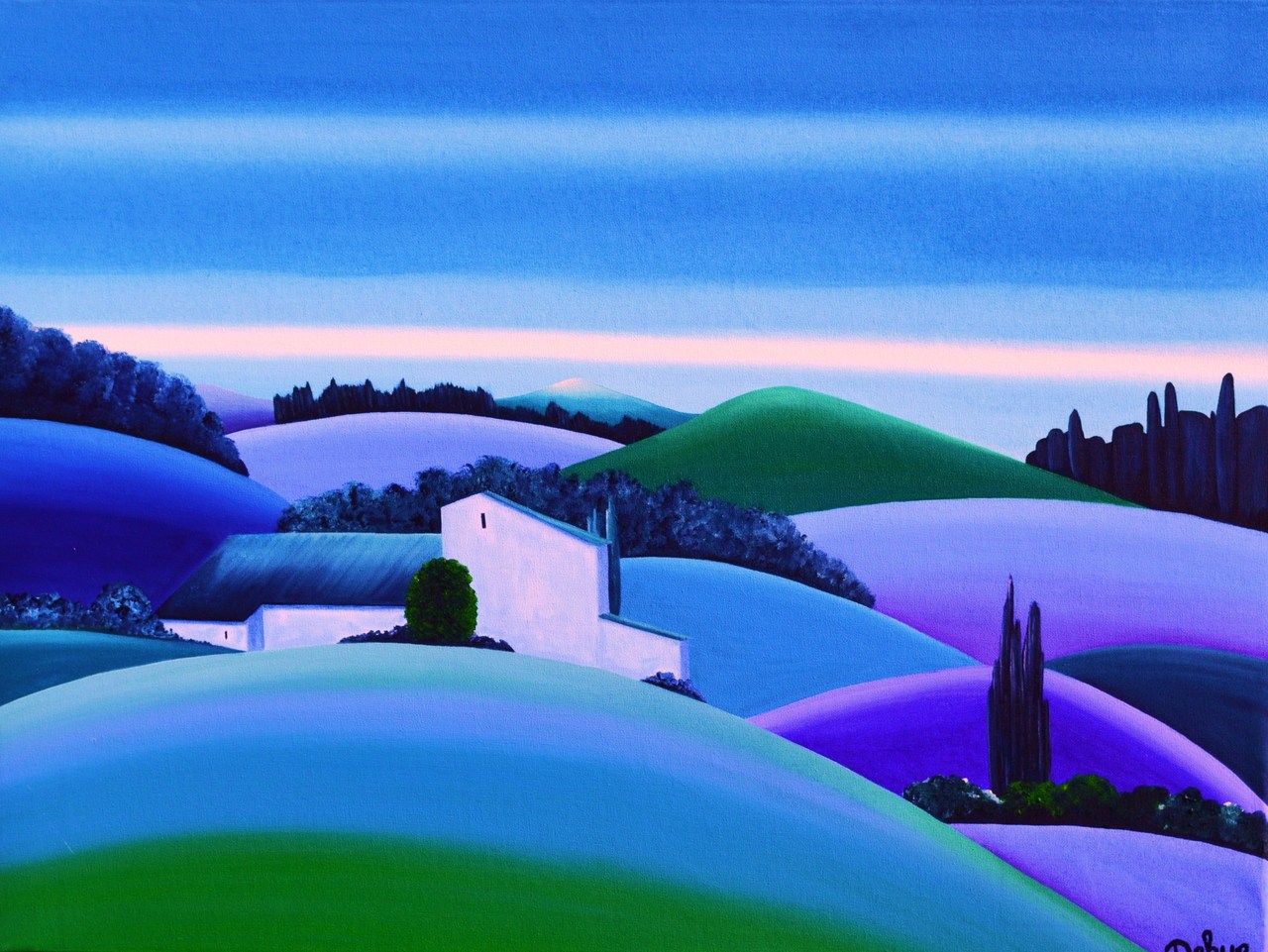 Figuratief Landschap Blauw Blue Frankrijk Natuur Bergen Bomen Abstraherend Landscape Boerderij Frans Bleu Huisje Heuvels France Franse Paysage French