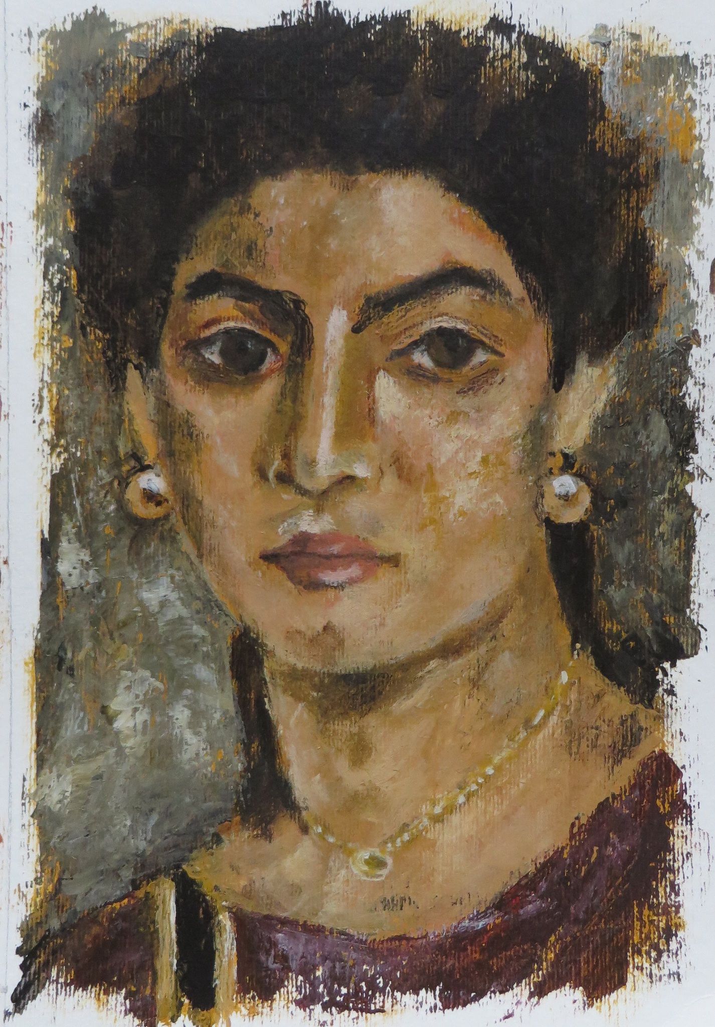 Studie in acrylverf op papier naar portretten uit Fayoum.
