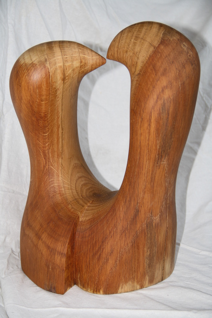 Lopend op straat kom je elkaar onverwachts tegen. 'Hee hallo, hoe is het' . Een snelle zoen voordat je beiden je weg vervolgd. Houtsoort: Eikenhout afwerking: meubelolie