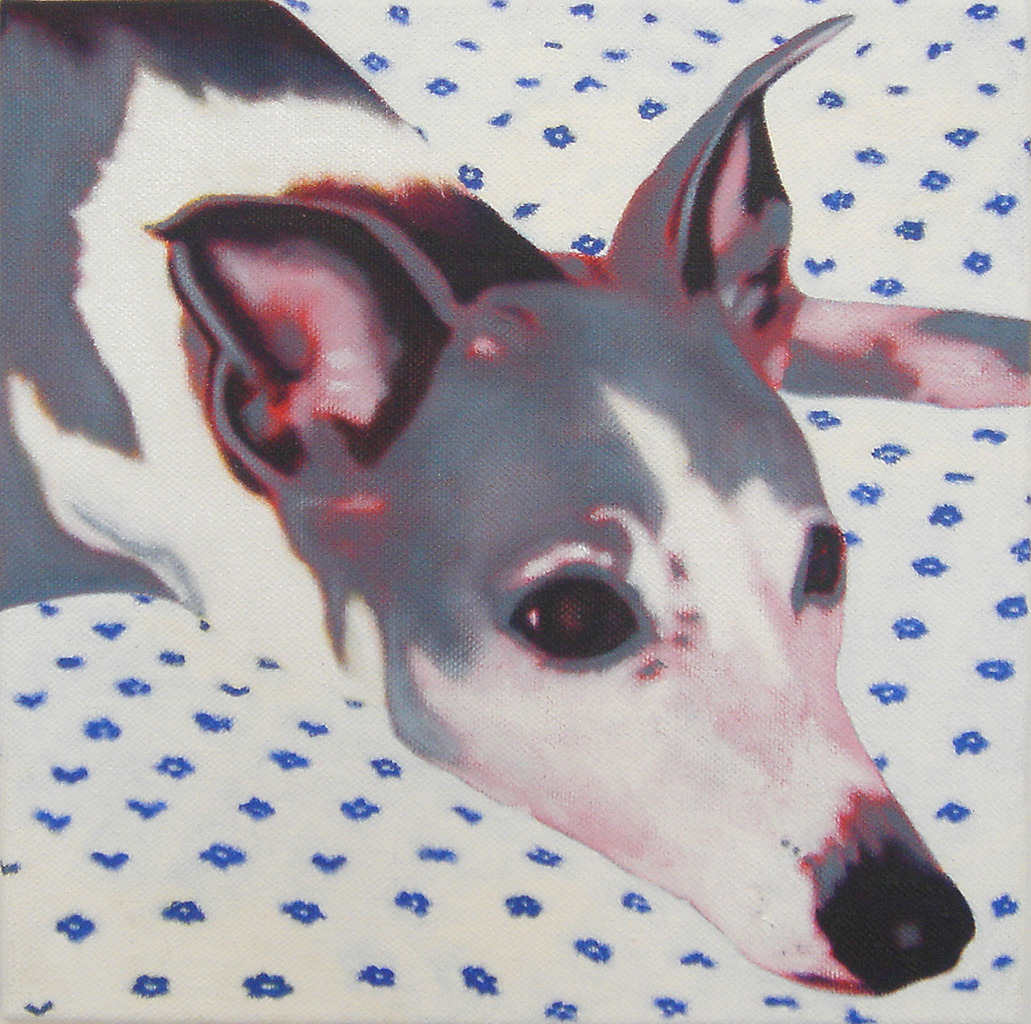 Rood Liefde Vierkant Olieverf Hond Laken Surreëel Liggend Transparant Denken Whippet