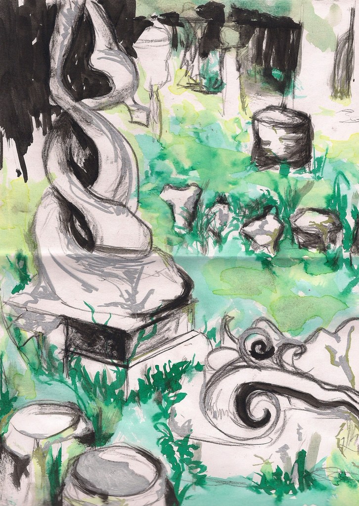 Een impressie van de beeldentuin van de Sint- Baafsabdij.