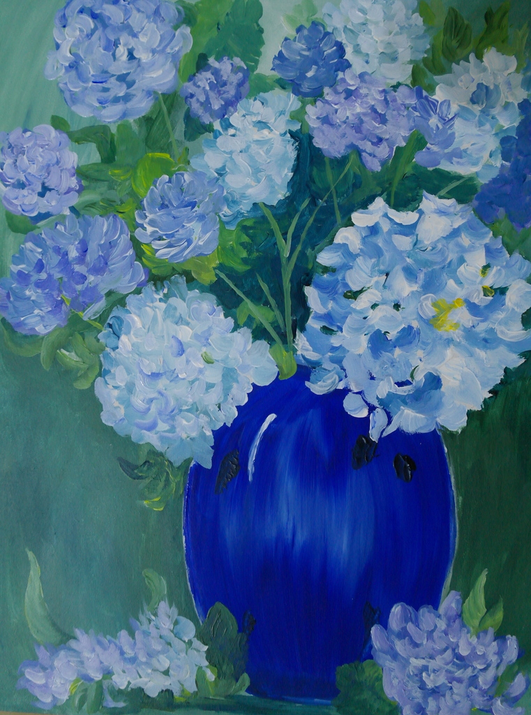 Vaas met hortensia's