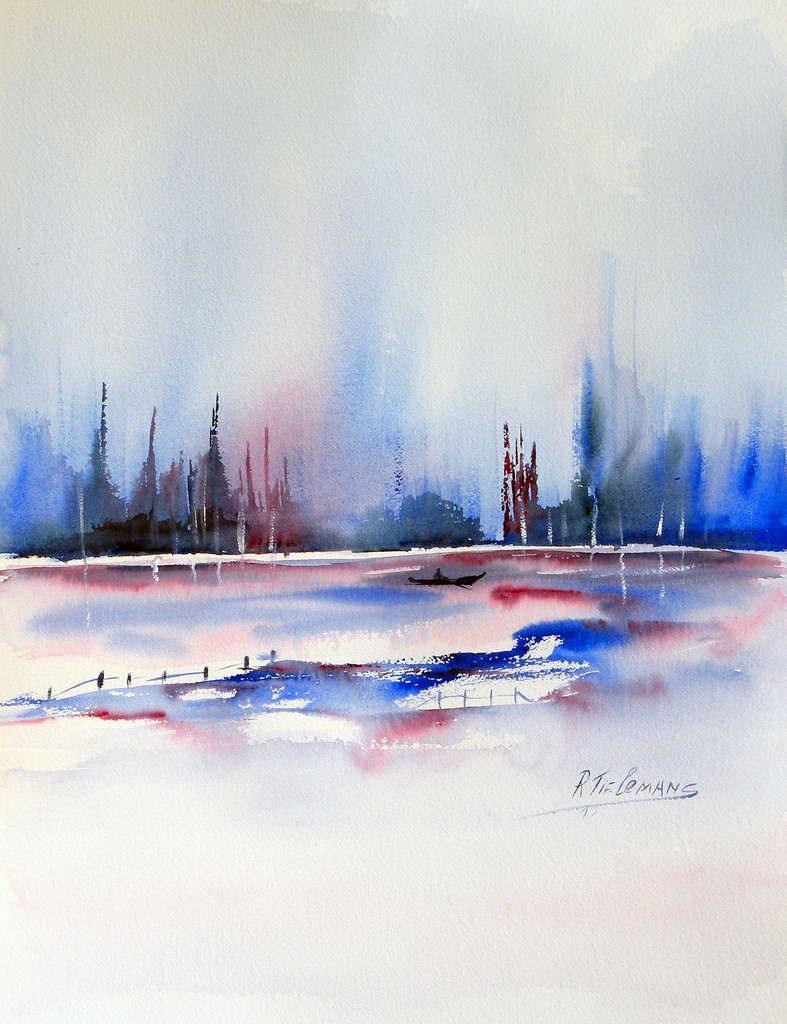 Wit Grijs Landschap Blauw Blue Water Aquarel White Landscape Watercolour Grey