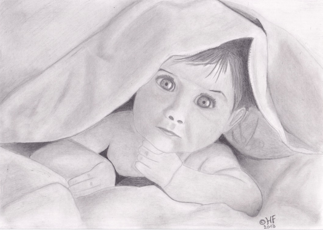 Baby onder dekentje. Formaat: A4