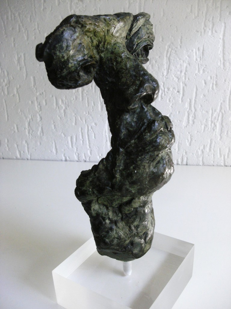 Portret van vrouw zij-aanzicht, van brons gemaakt.