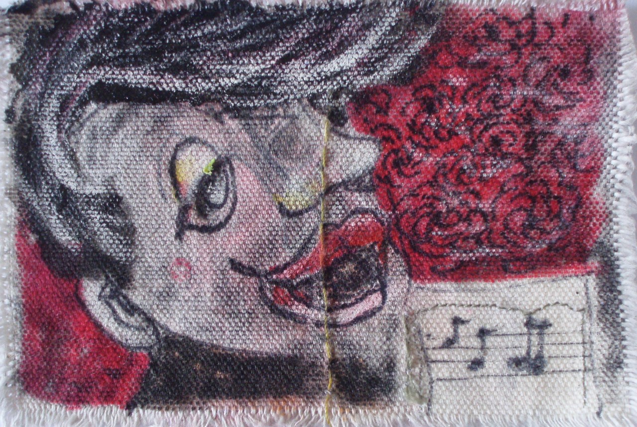 Mini, deel van een serie, geschikt voor in een Tomy Gacha Artomat. Kan opgenaaid worden op tas of jas of als zelfstandig kunstwerk functioneren.