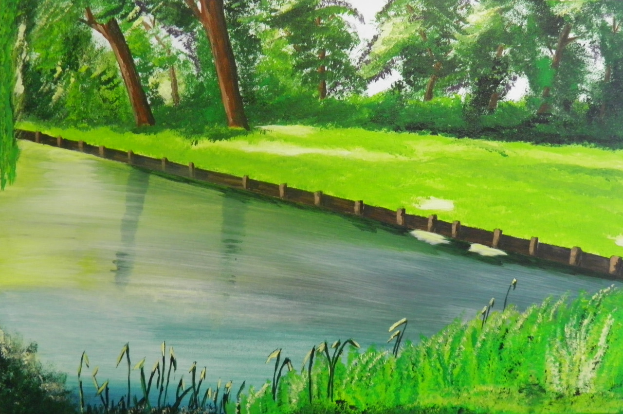 Schilderij Blauw Acryl Groen Vermeer Vijver Penseel Gea Gesina