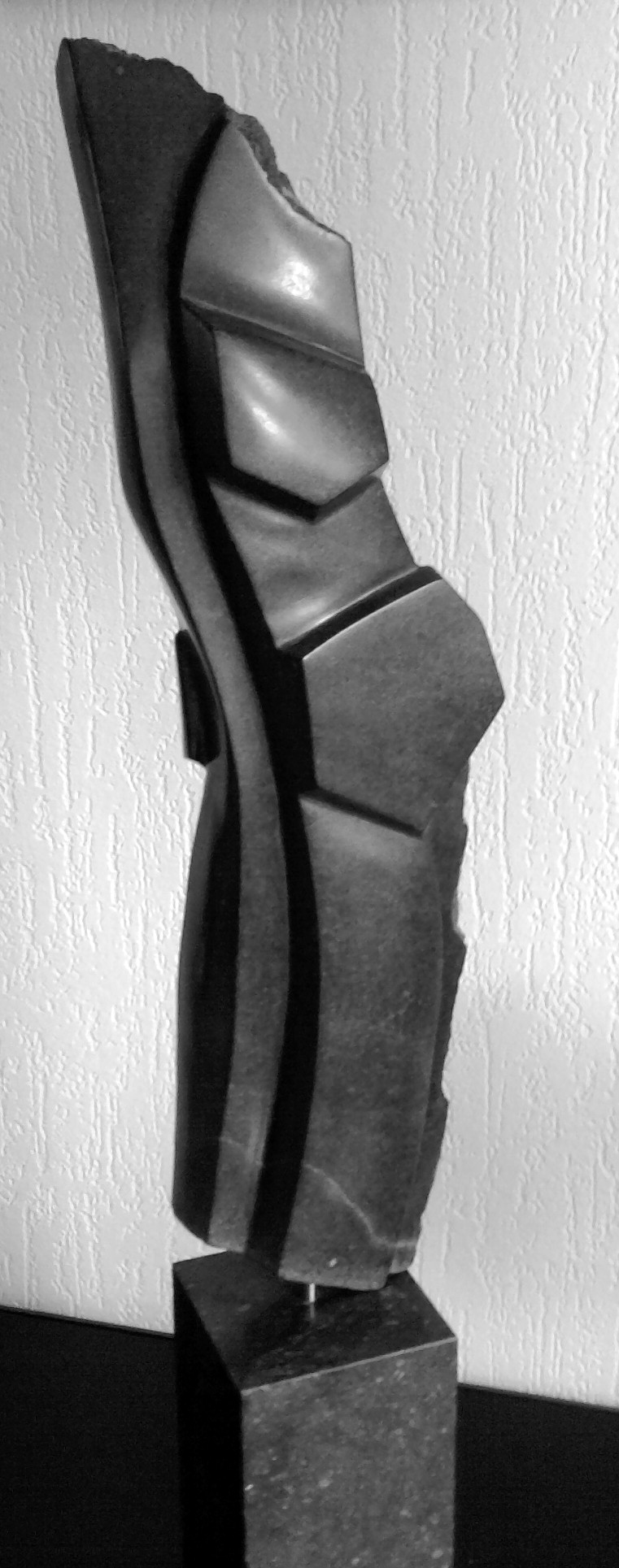 Ronde, aaibare vormen voor bijvoorbeeld torsen hebben haar voorkeur. Niets of niemand is compleet, zo ook haar beelden. Wat er niet is in de steen blijft onbekend en onbewerkt.