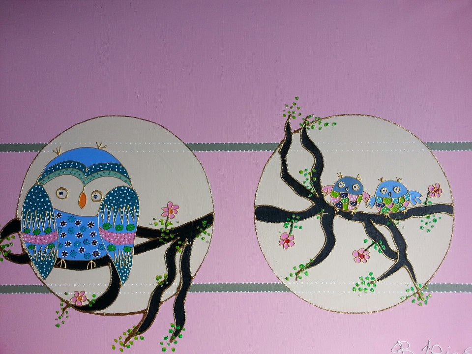 Schilderij Uil Kinderkamer Babykamer Geboorteschilderij Decoratie Oel Uilewapper