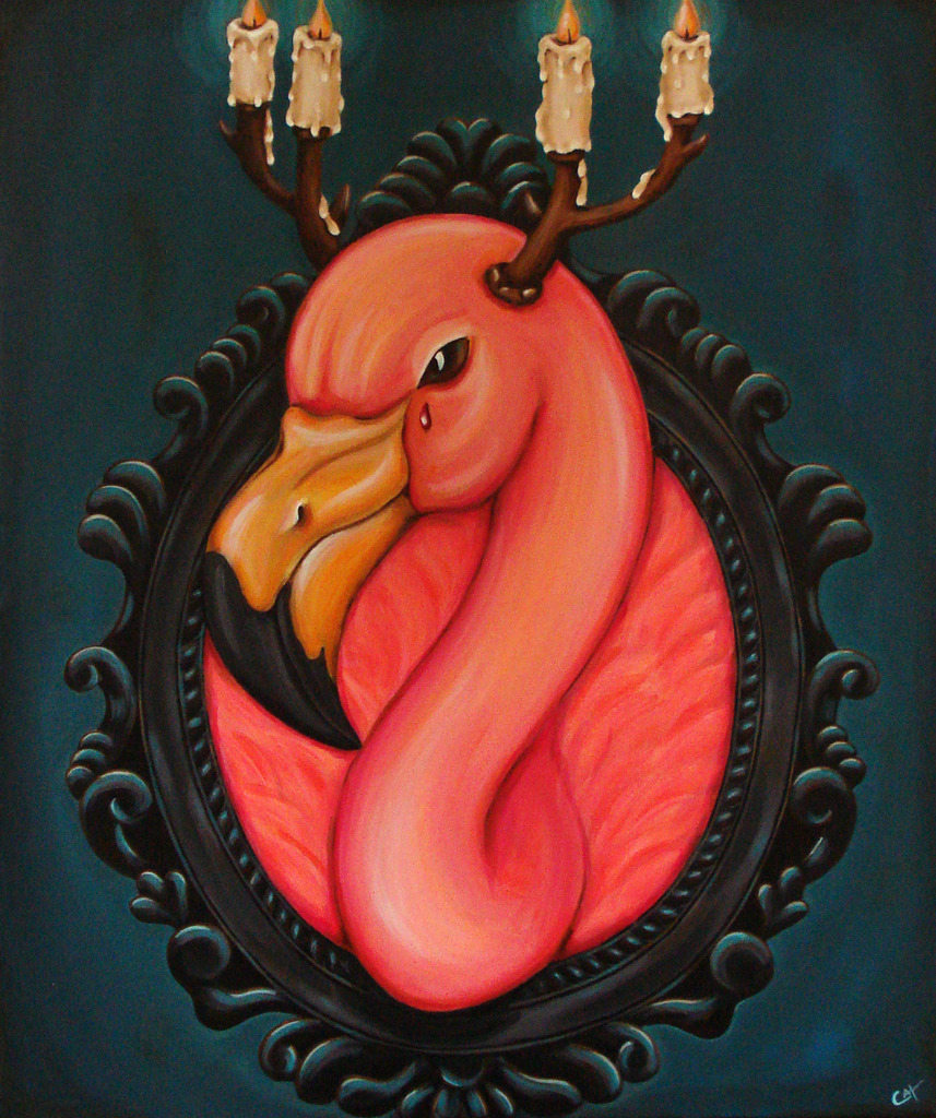 Flamingo Blues Kandelaar Roze Blauw Schilderij Ornament Vuur Verdriet Taxidermy Opgezet Vogel Gewei Hert Taxidermie Tropen Magenta