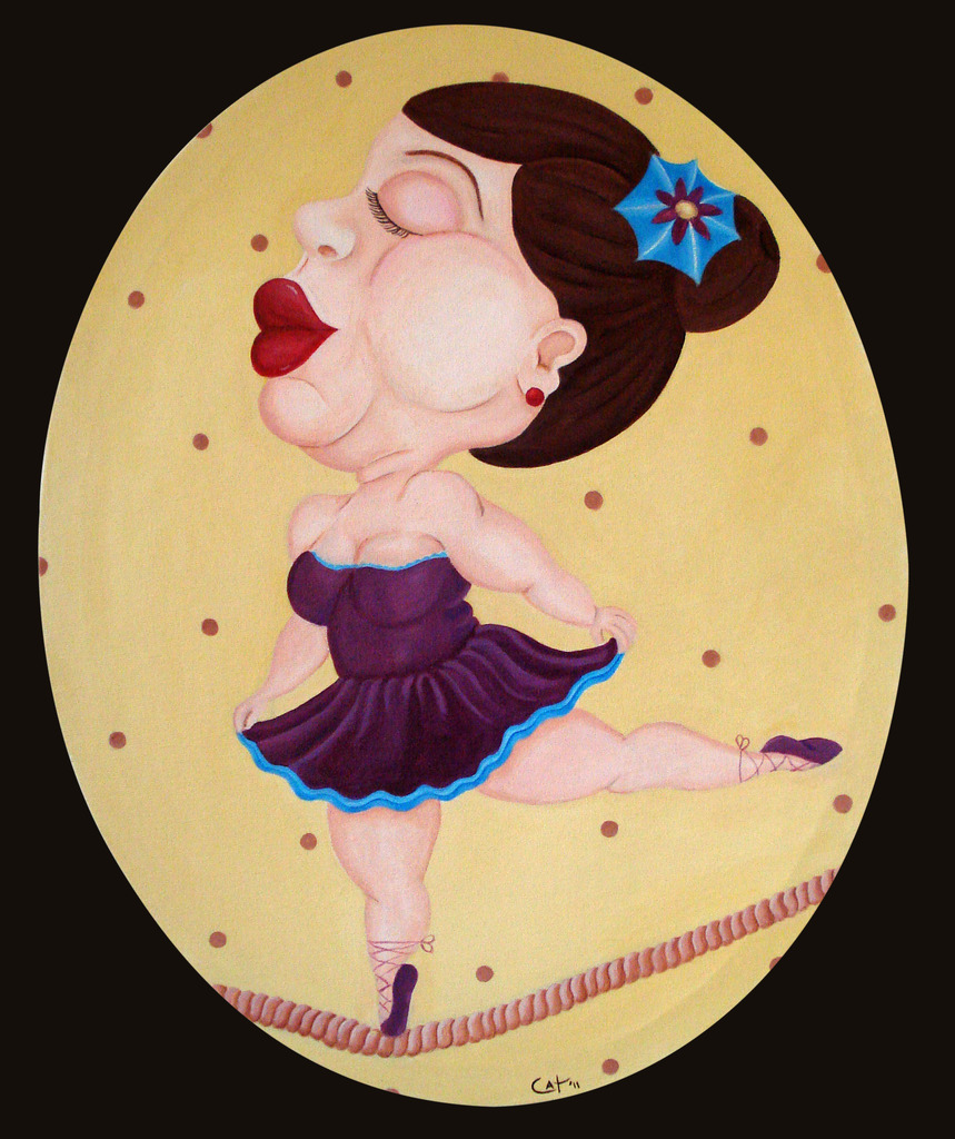 Geel Acryl Vrouw Portret Doek Ballet Ovaal Danser Koorddanser Surreeel
