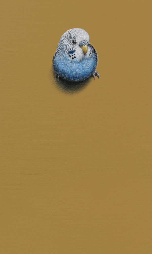 Grasparkiet (Melopsittacus undulatus). Dit doekje maakt onderdeel uit van de geschilderde installatie 'Multicultural'. Meer informatie over het project kun lezen op de informatiepagina.