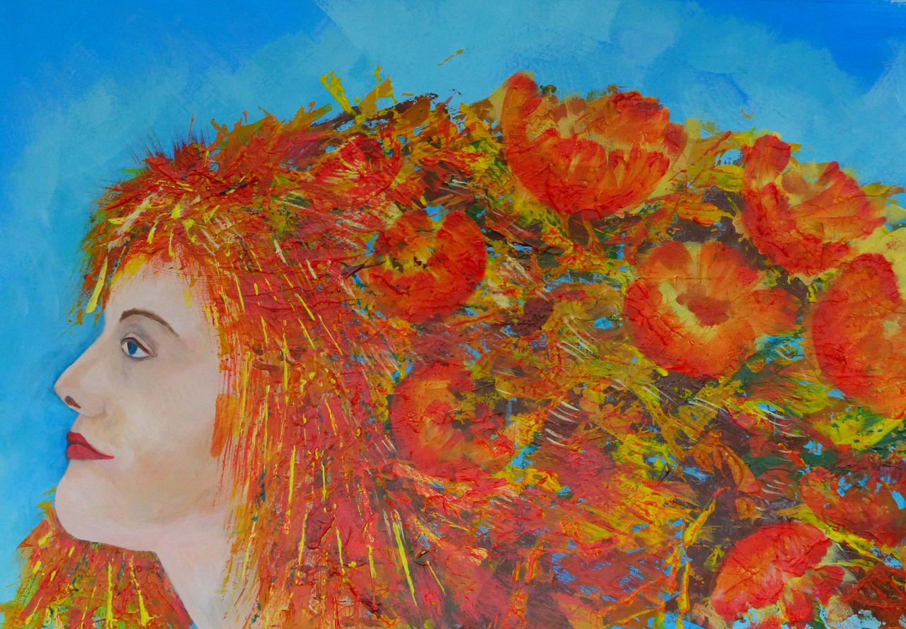 Rood Kwast Acryl Expressief Portret Papier Kleurrijk Paletmes