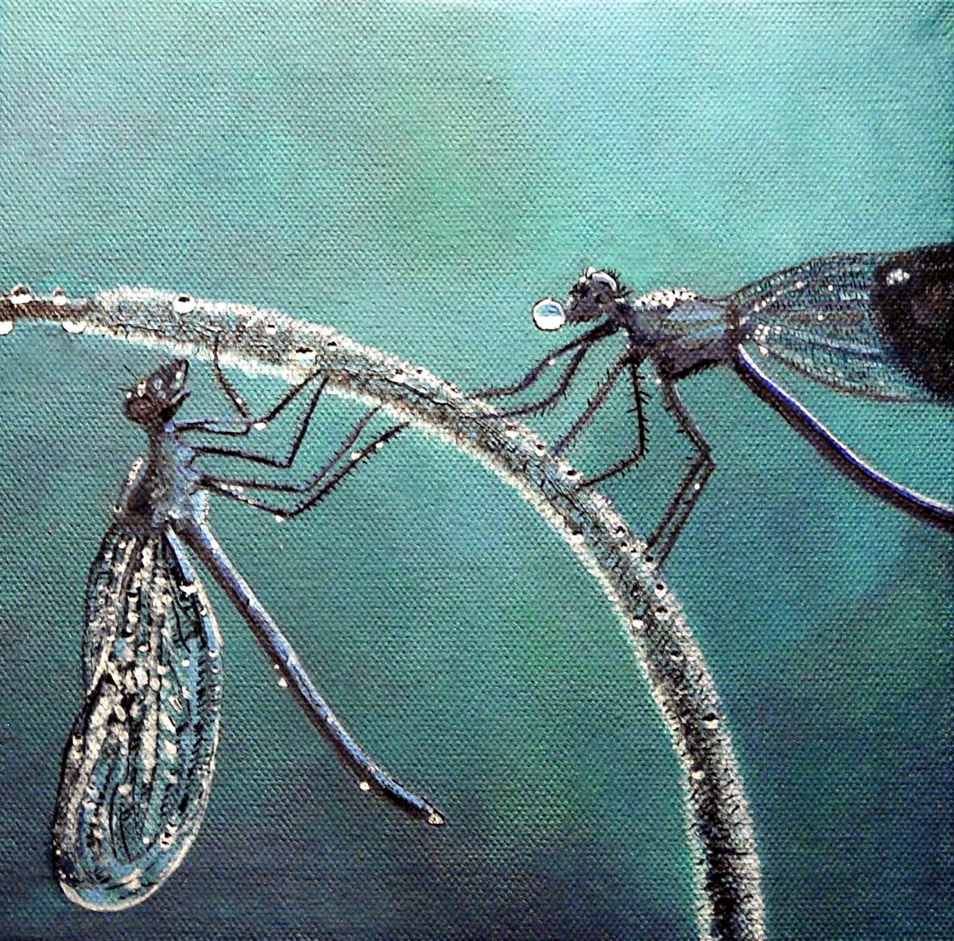 libelles laven zich aan dauw