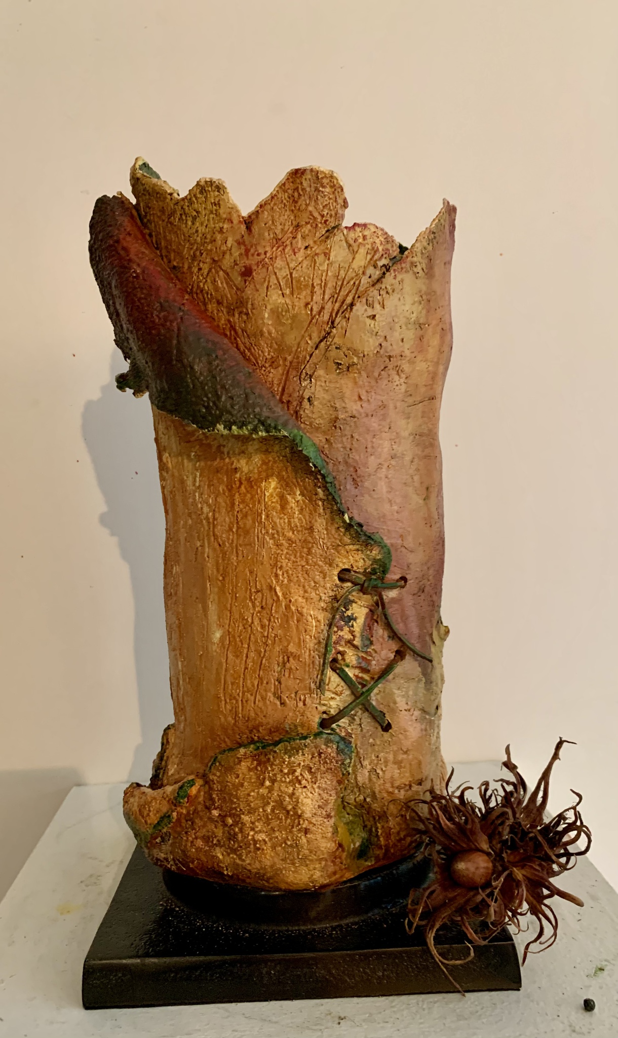 bovenaanzicht van een URN een uniek gemaakt beeld van keramiek om as in te bewaren van een geliefd persoon , die is overleden... ik noem het HERINNERINGSBEELD......het keramische BEELD (. als vorm /pot voor de as) kan op een geheel eigen manier n bijdrage leveren aan de. TROOST , die iemand nodig heeft in tijden van verlies....deze URN is voor binnenshuis...juist dáárom... en tevens een BEELD waarin andere kleien dierbare herinneringen in bewaard kunnen worden.. kindertijd!!! kijk ook op: www.urnen-ellyvandeneertwegh.com