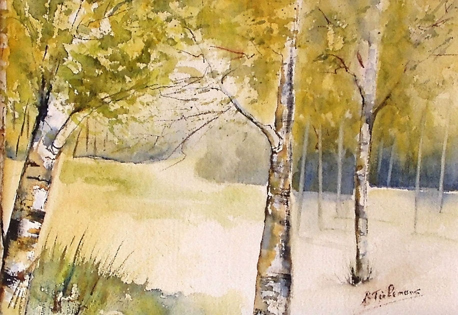 Wit Figuratief Grijs Zwart Landschap Blauw Groen Bruin Blue Papier Aquarel Realistisch Natuur Green Bos Boom Black White Brown Landscape Paper Figurative Tree Forest Nature