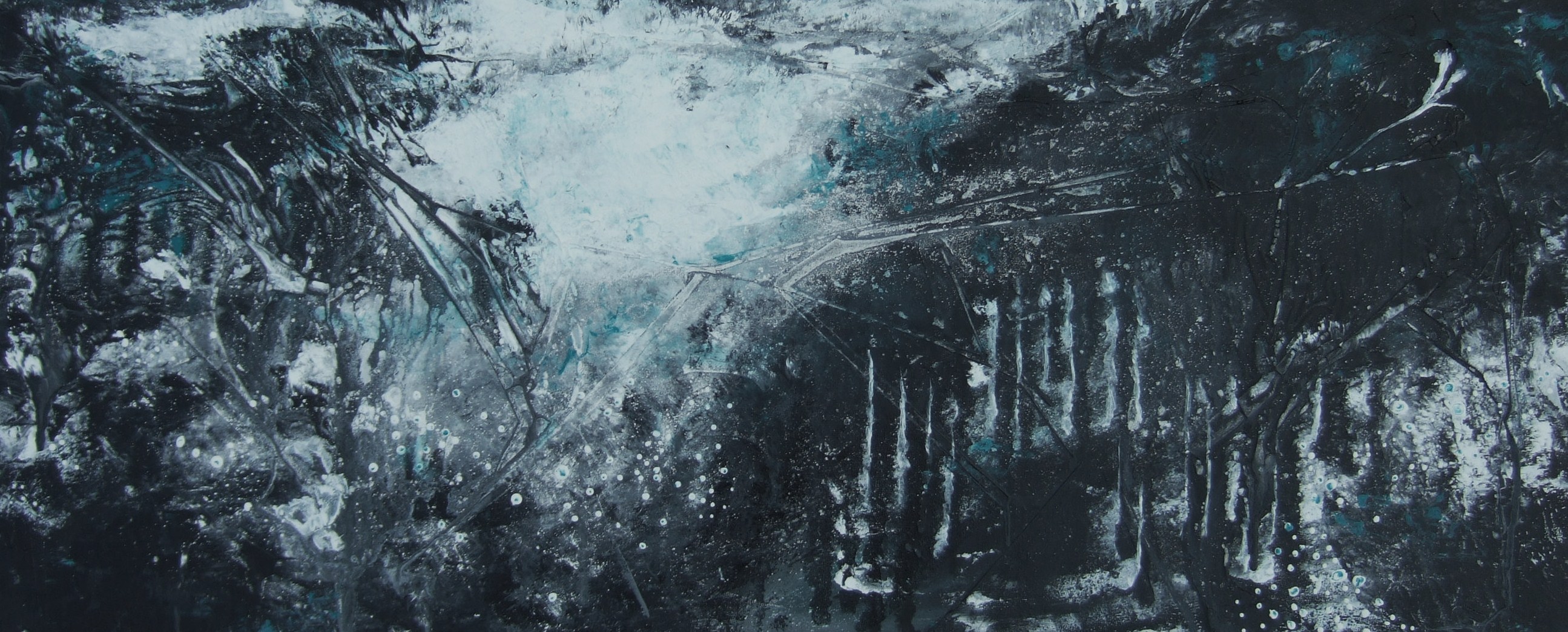tussen de donkere stammen ontwaar ik een open ruimte ...