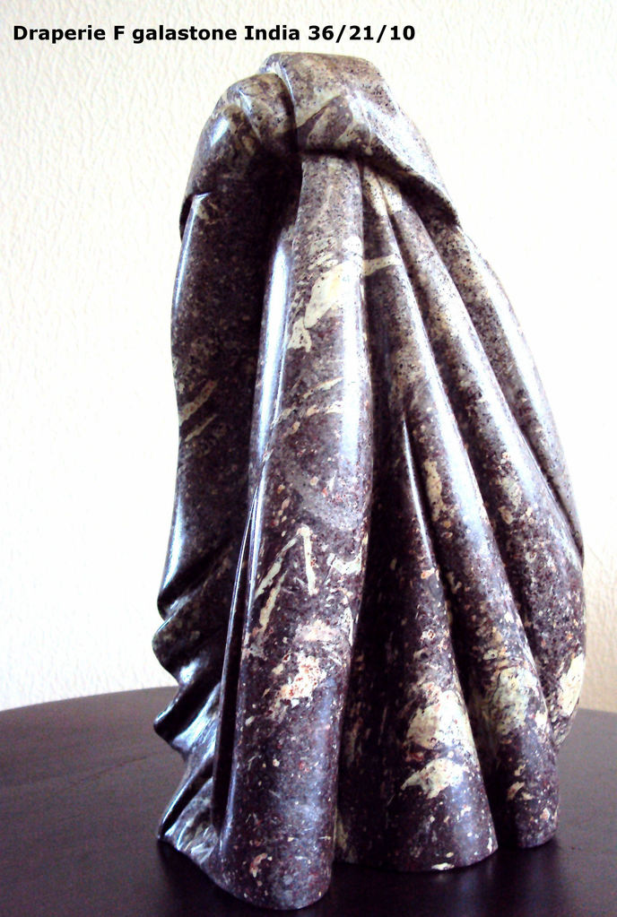 THEA SABELIS (1945)geboren te'sGravenhage .Mijn beelden zijn abstract ,de harde steen die ik bewerk tot een aaibaar lap stof.