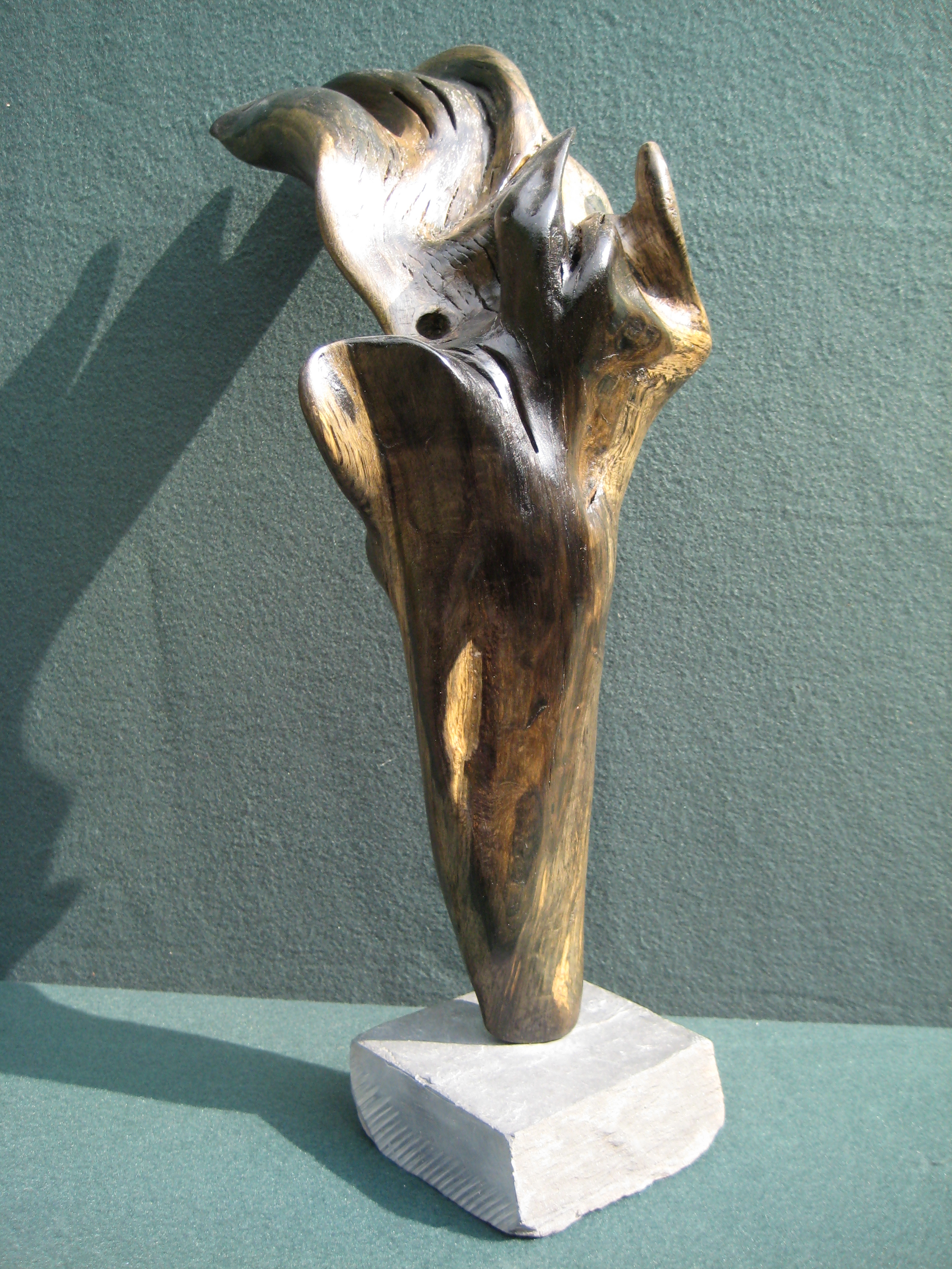 Ik ben Henny Rijkeboer (1941) en woon in Haaksbergen. Tijdens mijn wandelingen en fietstochten in de natuur zoek ik hout. Soms meteen, soms wat later zie ik wat het hout mij te bieden heeft. Na het nodige hak- en schuurwerk, waarbij ik mij laat leiden door de vorm van het hout, ontstaan vaak natuurlijke abstracten. Al kind sneed ik al kleine houtfiguren. Rond mijn veertigste maakte ik mijn eerste grote beeld. Mijn pensionering bood mij de ruimte om mijn liefhebberij te professionaliseren. Ik heb hierbij mijn eigen technieken ontwikkeld.
