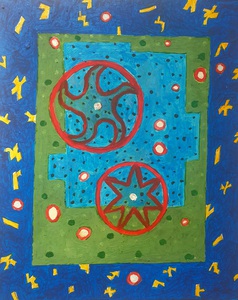 Zijn verhouding met de natuur zou je bijna religieus kunnen noemen maar altijd speels en licht. Hetzelfde kan gezegd worden over zijn behandeling van kleur. Doortrokken van ernst maar nooit zwaarmoedig.