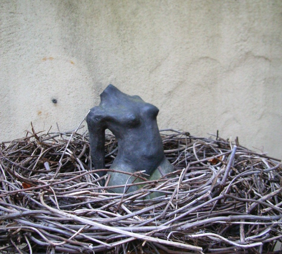 vrouwen tors van fijne charmotte gecombineerd met gedroogde hoptakken