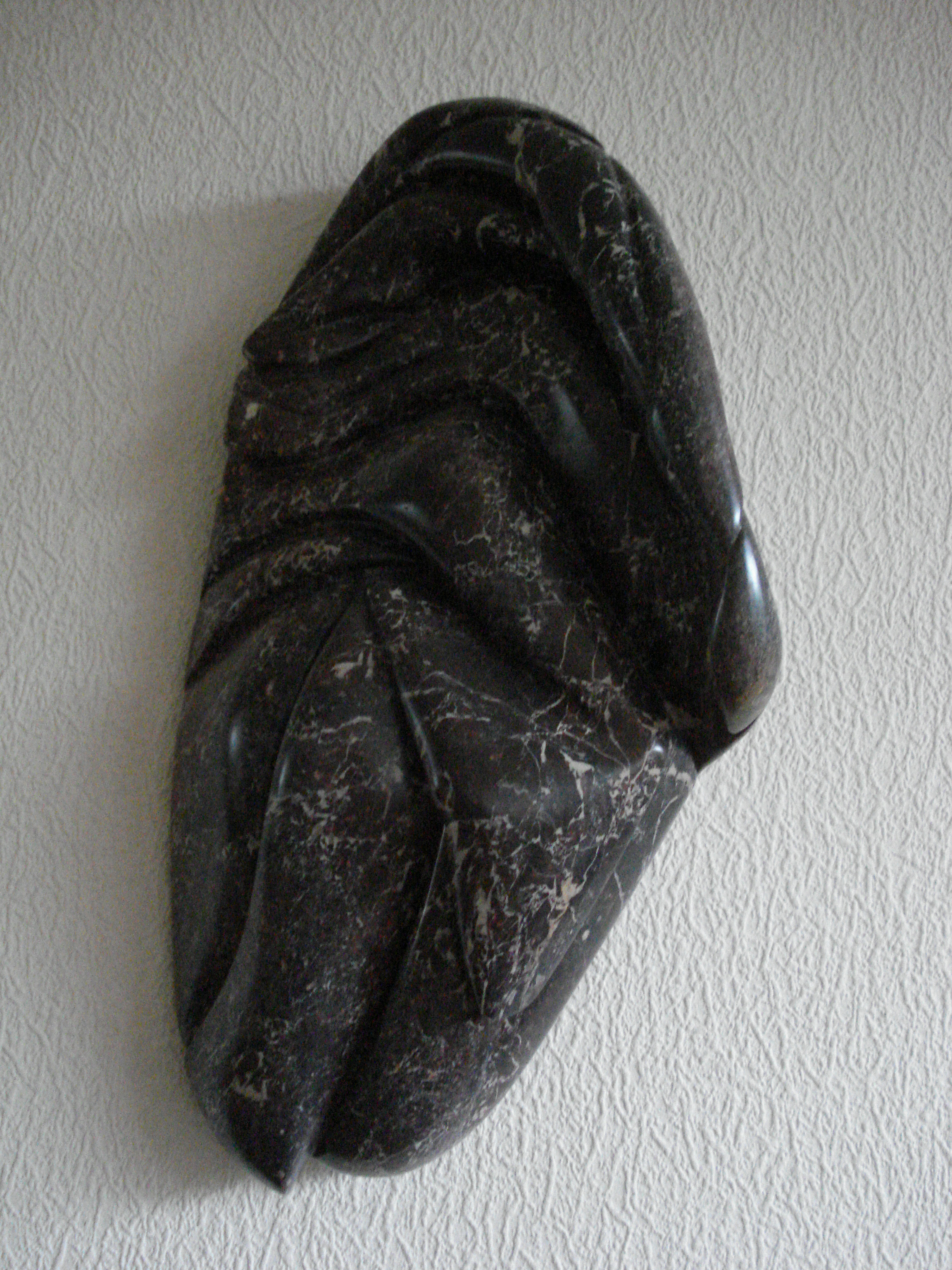 THEA SABELIS (1945)geboren te'sGravenhage .Mijn beelden zijn abstract ,de harde steen die ik bewerk tot een aaibaar lap stof.