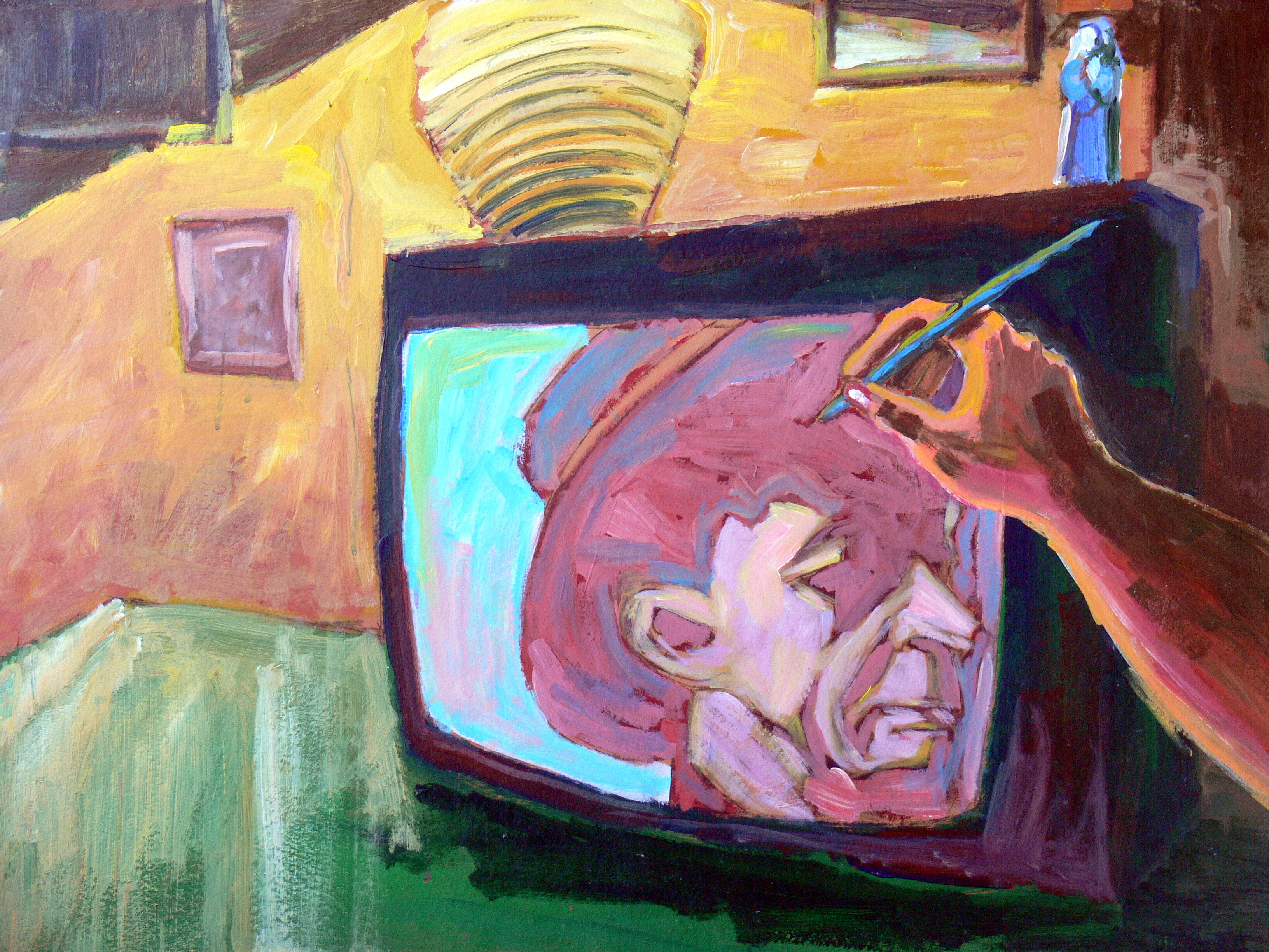 Potlood en houtskool leiden als vanzelf mijn hand over papier en doek. Dat merkte ik al in mijn jongste jeugd. Daarna ging ik op zoek naar de wereld van kleur. Ik keek naar grote voorbeelden in de schilderkunst, vooral de moderne en hedendaagse kunstenaars. Het grote gebaar sprak me aan, een intuïtieve daad stellen. Schilderen vanuit je onderbuik. De belemmeringen bij het volgen van mijn grote voorbeelden staken alras de kop op; mijn ratio zat me meer dan eens in de weg. Dus ondersteuning gezocht bij kunstenaars en kunstdocenten. Sinds '96 ben ik zelfstandig aan het werk in kunstenaarscollectief Troje. Meestal werk ik op groot formaat (120x100) en schilder vrijwel uitsluitend in acryl. De aanleiding voor een werk kan zijn een anekdote, een onverwacht straatbeeld, een foto in de krant.