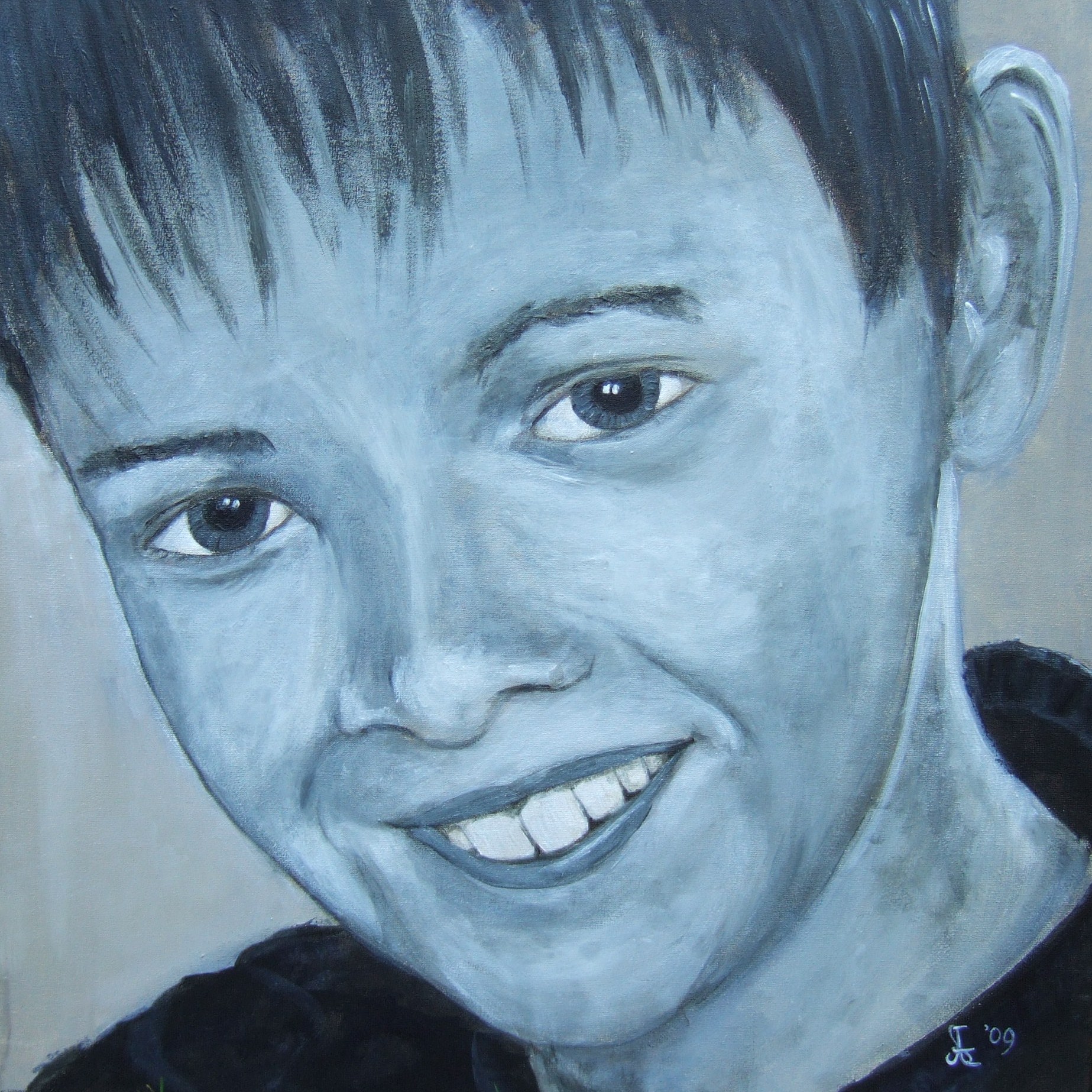 Portret in monotone tinten van mijn zoon Cas.