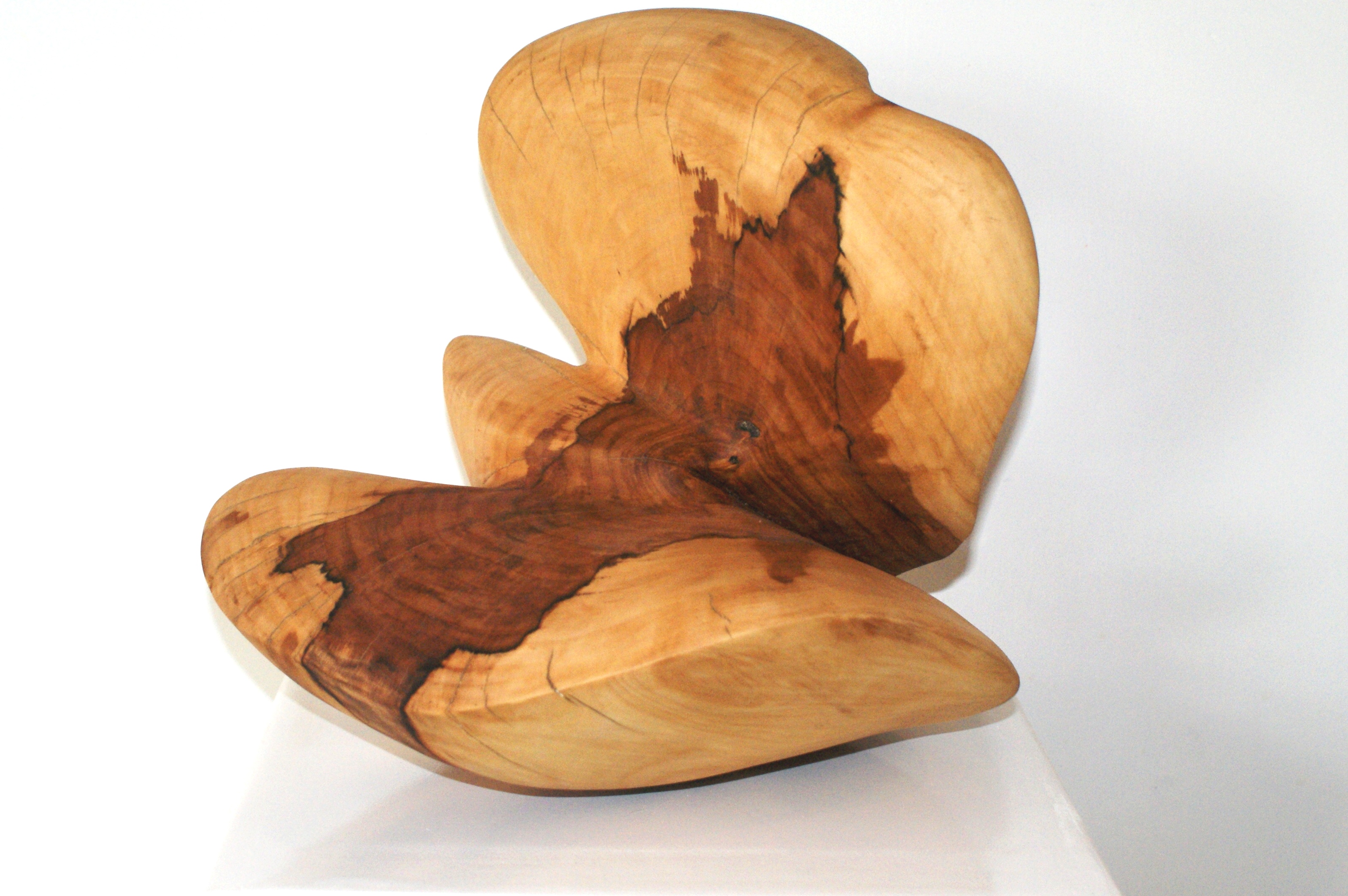 Uit Esdoorn is een beweging gemaakt, die een "vlucht" kan zijn of een dans, De beweging in het hout zat er al in en is alleen zichtbaar en tastbaar gemaakt Wat zegt dit beeld jou?