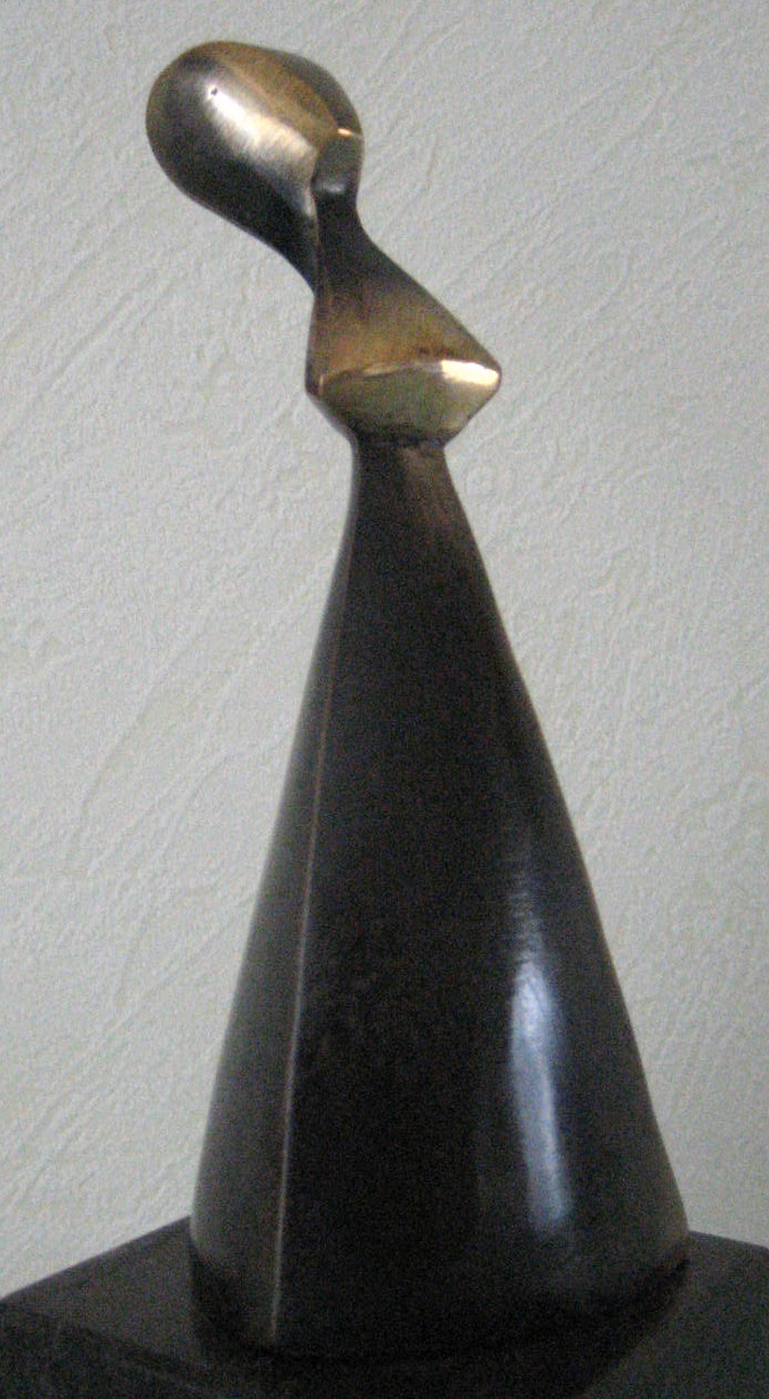 Door de harmonische lijnen straalt dit kleine beeldje de onmiskenbare elegantie uit van een statig (edel) vrouwpersoon. De afwerking van dit beeldje is uitgevoerd door Louis Wierts in een zeer persoonlijk patine. Unicaat Afmetingen inclusief sokkel (sokkelhoogte: 4 cm)