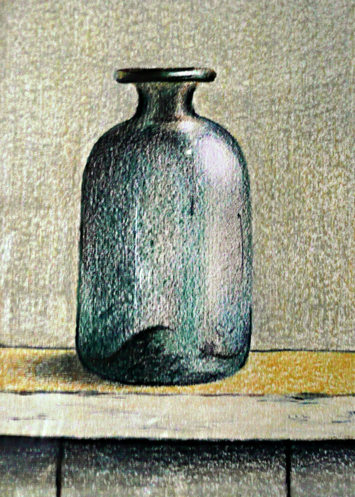 Antiek flesje 3, maakt deel uit van drieluik, kleurpotlood op papier, 26 x 53