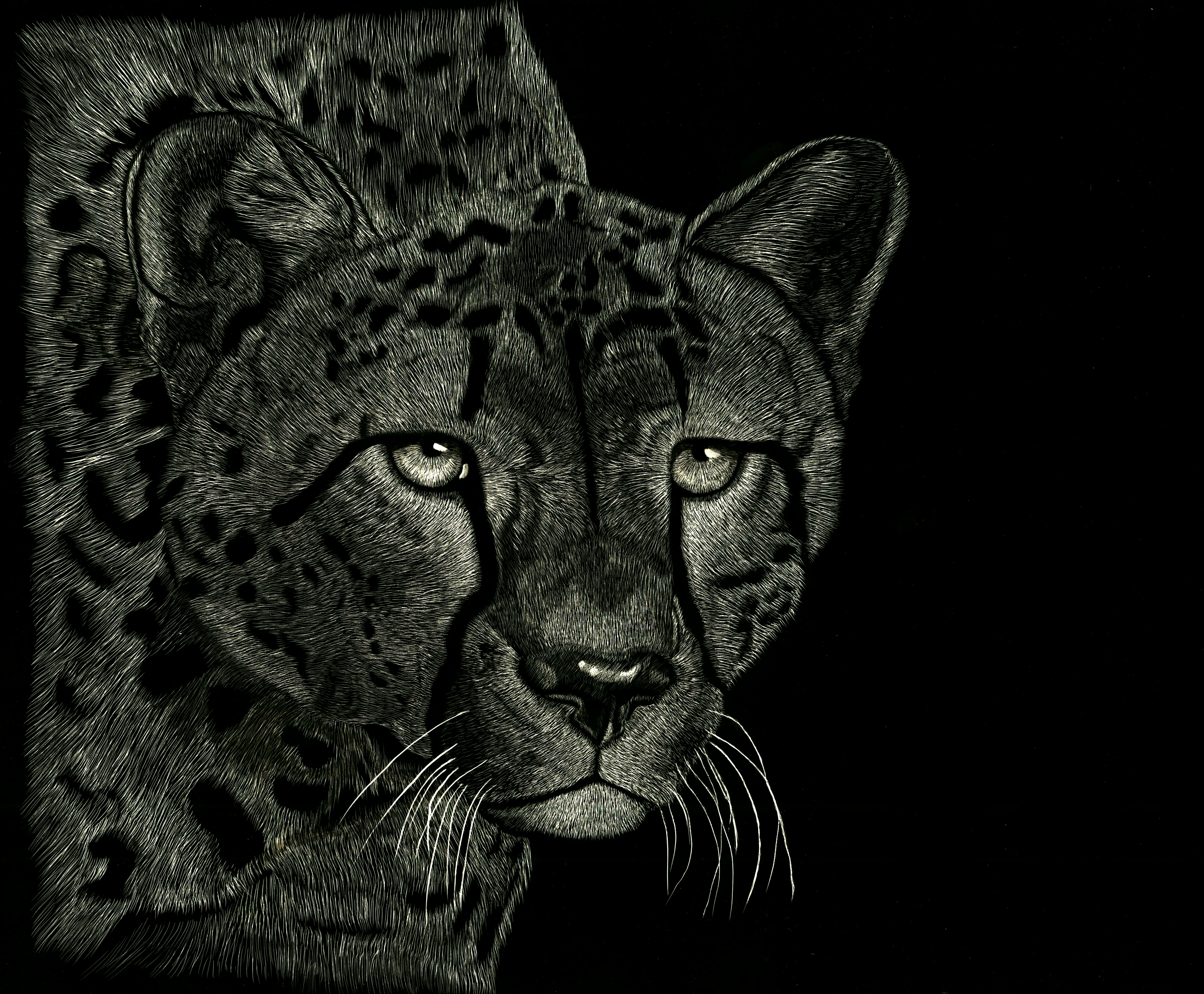 Dieren Dier Kat Realistisch Inkt Katten Grote Gravure Katachtigen Roofdieren Cheetha