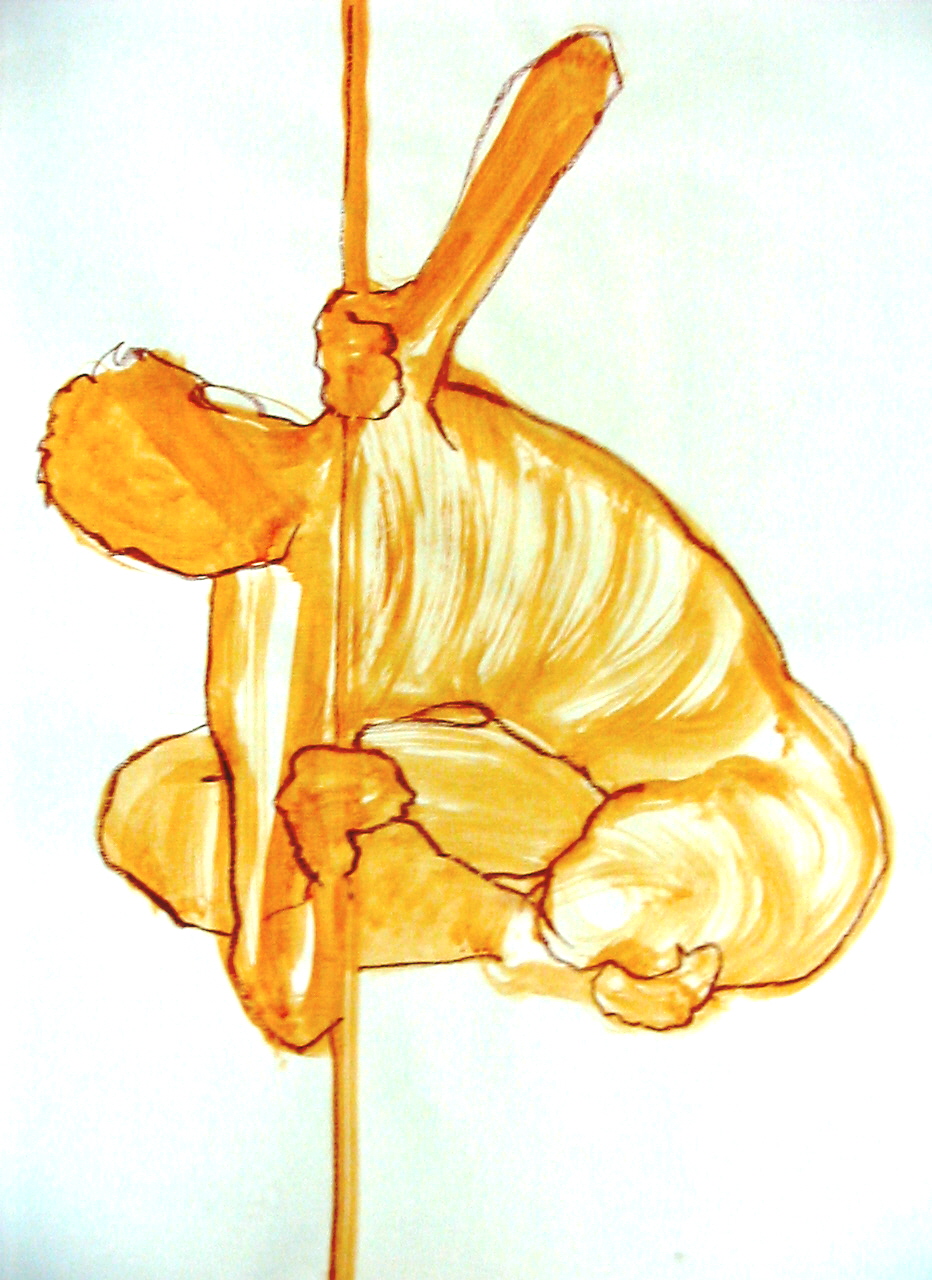Hoe langer je leeft , hoe meer bagage. Er is zoveel om van te houden. Wanhopig zoek ik naar één rode draad, maar heb inmiddels een heel breiwerk om me heen geknutseld ! Maar terwijl ik teken of schilder lijkt het even of alles gaat kloppen. Dan gaat het over rust, ruimte, adem, licht, warmte, humor, compassie, geduld, concentratie, balans, geluk. Ik denk, ik ben een eeuwige reiziger, onrustig zoekend naar een kern van waarheid. Ik vertrouw op mezelf en op mijn zorgvuldig ingepakte rugzak met gereedschap. En daar moet ik het mee doen. Manje Dijkman (1954 Enschede) Volgde opleiding aan academie Minerva Groningen en aan de Aki Enschede (1976- 1981). Was van 1982-2006 docente beeldende vorming bij Concordia K&C in Enschede, Hof 88 in Almelo en de Hooge Lucht in Oldenzaal. Gaf daar voornamel