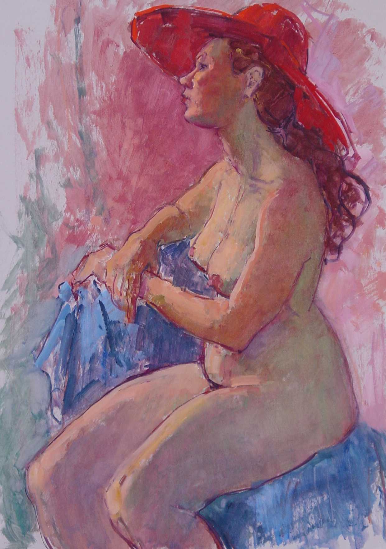 Zittend naakt met rode hoed